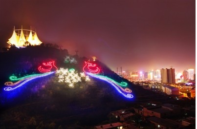 今年继南山山体亮化一期工程顺利完成后,西宁市在南山凤凰台东南面山体至劳动路所对的山体范围内实施了南山山体亮化二期工程。凤凰台是南山著名的景点,相传远古时期有凤凰栖落于此,后人便称南山为凤凰山。因此,在南山山体亮化二期工程中,建设部门考虑到南山被称作凤凰山、丁香花是西宁市市花的因素,以凤凰、丁香花作为表现的主题,先后安装丁香造型灯250组,凤凰造型灯2组,通讯塔LED洗墙灯260个,索道塔射灯30个,景观亭LED射灯156个。