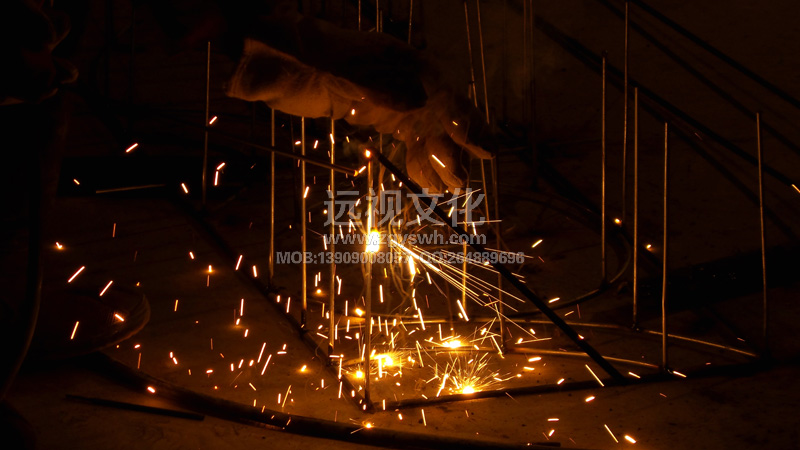 制作现场-钳工焊接瞬间火花溅射落地瞬间
